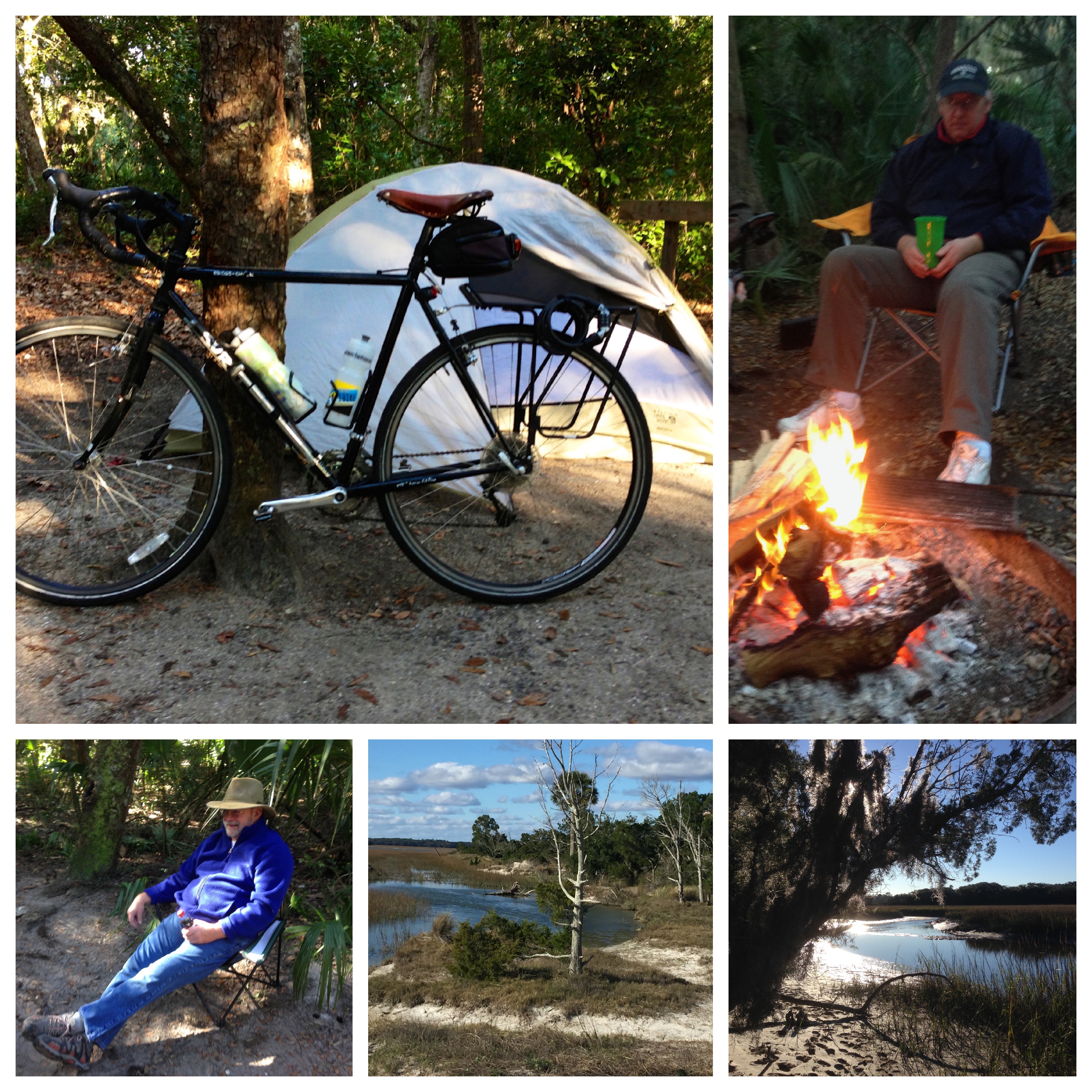 Every February I book a couple of campsites for a cold weekend at LIttle Talbot Island State Park. It is an annual winter retreat for a select group of Gainesville guys (we used to go backpacking in the mountains but we got old, OK?). We arrive with prodigious amounts of firewood, a year’s worth of exaggerated stories and outrageous lies, warm sleeping bags, assorted tents, inflatable mattresses, bicycles, bottles, braggadocio and bluster.