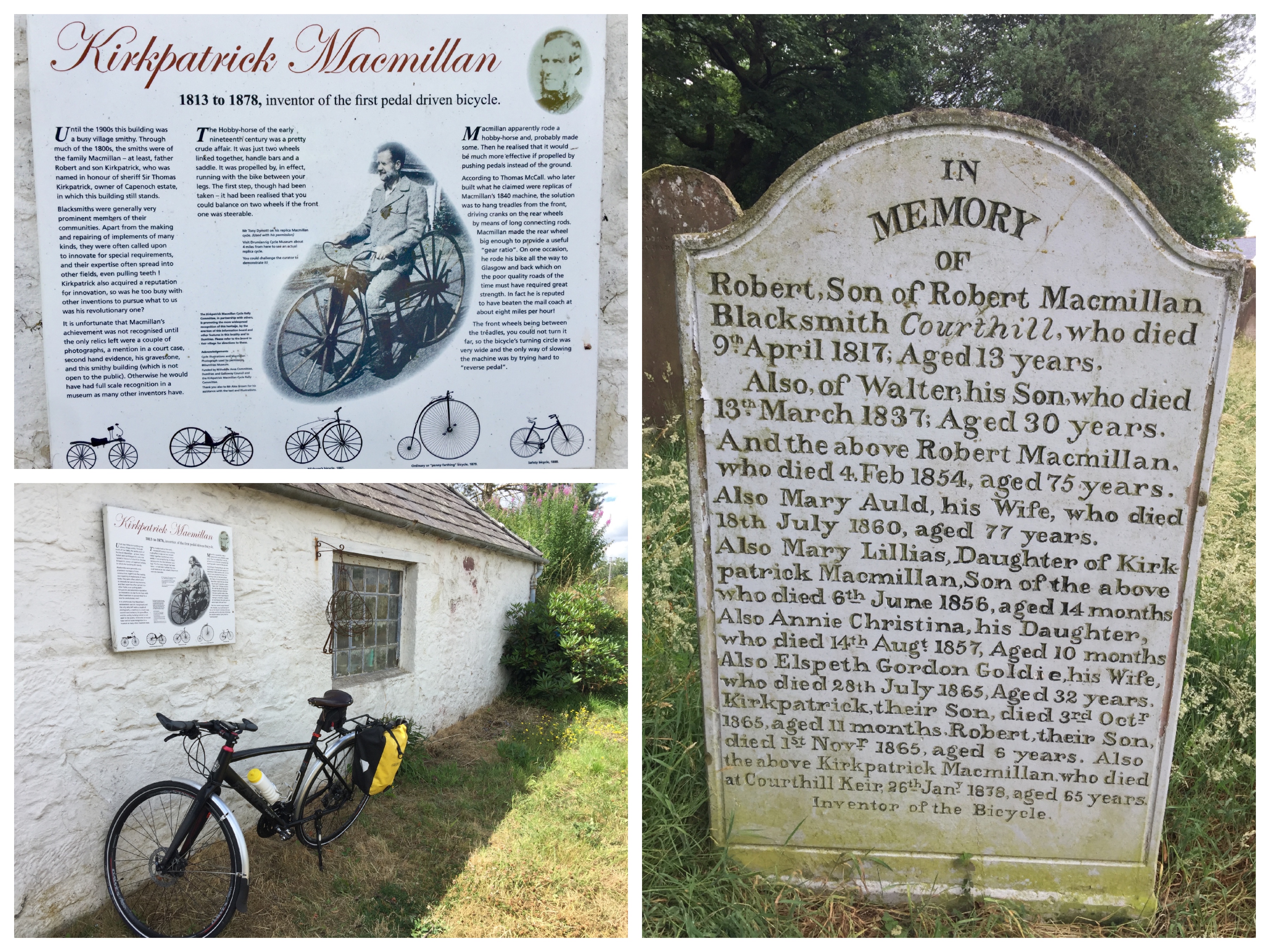 There is much more of the Macmillan family history crammed onto that stone. But it is the final line, seemingly an afterthought, that explains why pilgrims like us continue to this day to visit Kirkpatrick Macmillan.