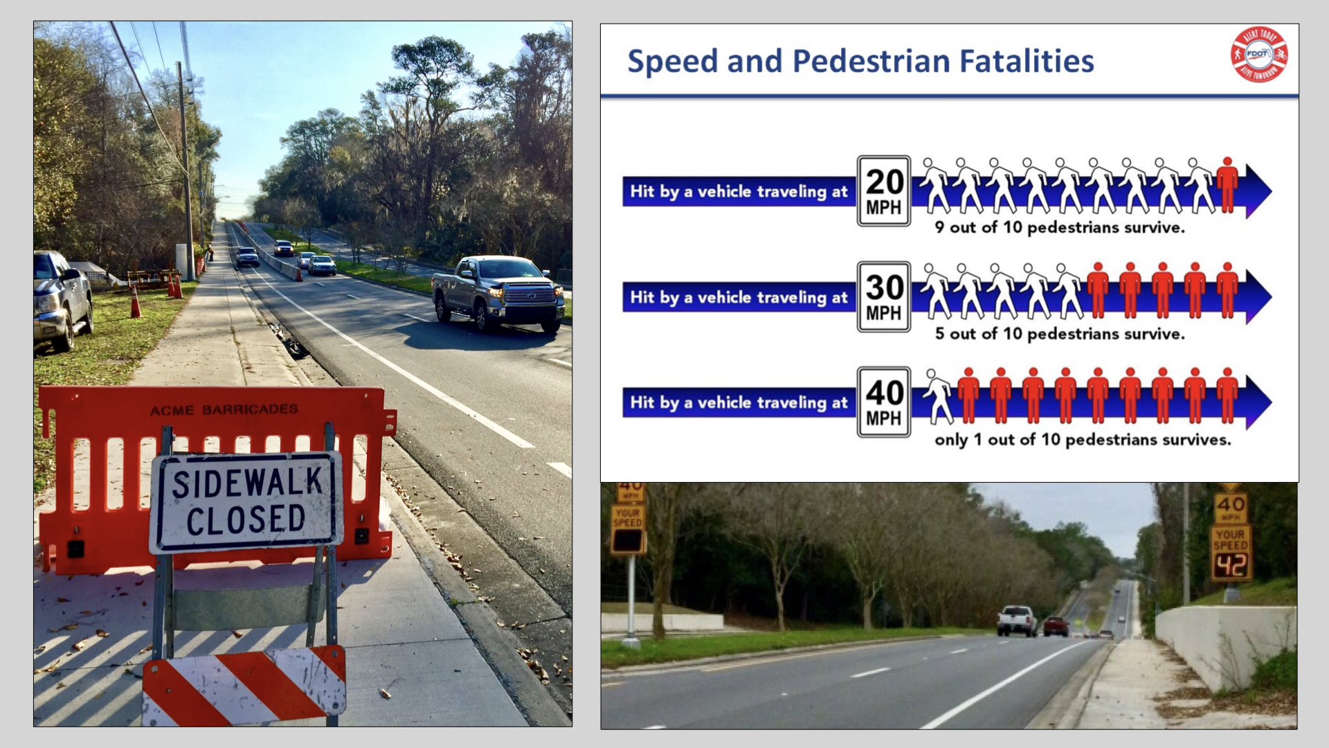 (Bullet) At 40 mph the pedestrian death rate is 90 percent.