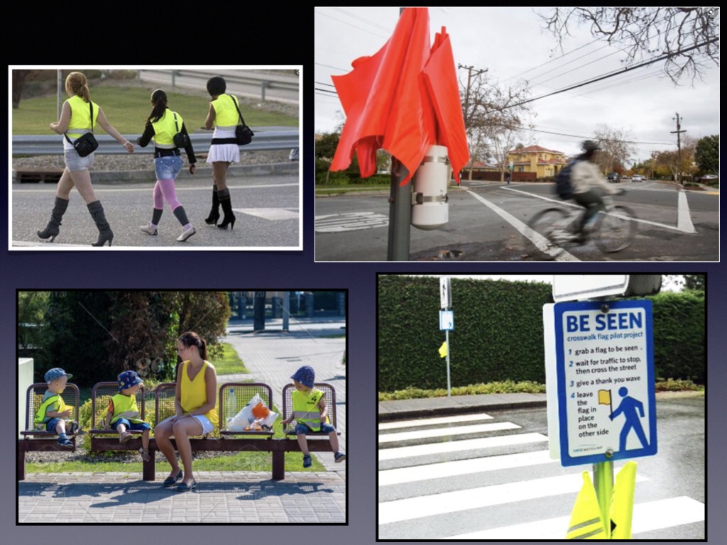 Or fluorescent yellow vests. Or something else reflective to warn innocent drivers that you intend to rudely interrupt their freedom of movement.