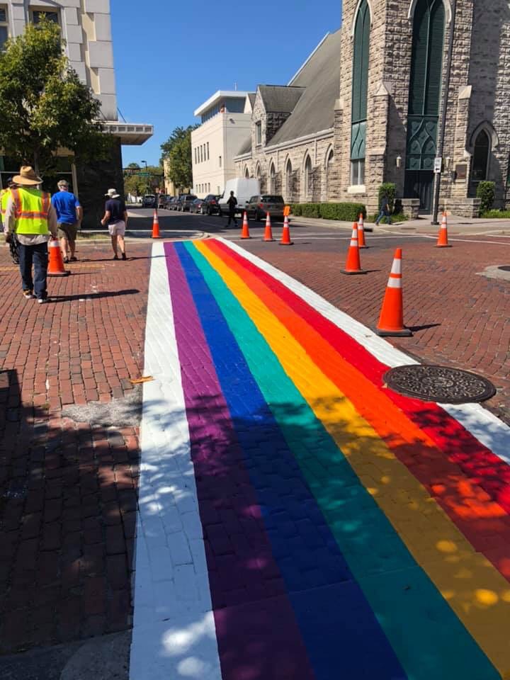 The three rainbow crosswalks on 1st Street were authorized by the City to celebrate National Coming Out day. Because we’re that kind of town.
