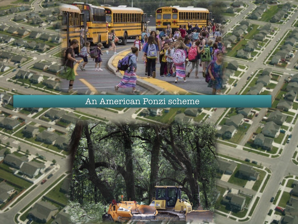 Whether the school district deliberately promotes sprawl or simply chases it the end result is the same. Board members are buying into a Ponzi scheme.