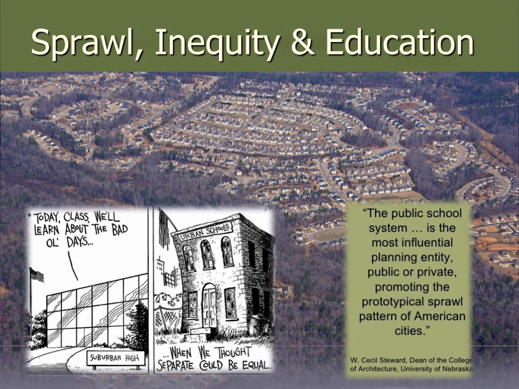 Or is it possible that the school district is itself promoting sprawl by announcing its intention to accommodate new development wherever it goes?