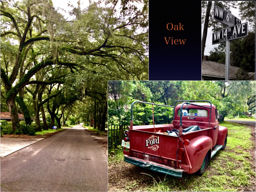 At 1.1 mile I enter Oak View neighborhood (be careful crossing 13th Street, wait for a break in traffic.) It’s an appropriately named neighborhood because it’s got some of Gainesville’s best tree canopied streets. Plus I saw this nifty classic Ford pickup that, according to the hand-written sign on the back window, still has its original engine and runs great!