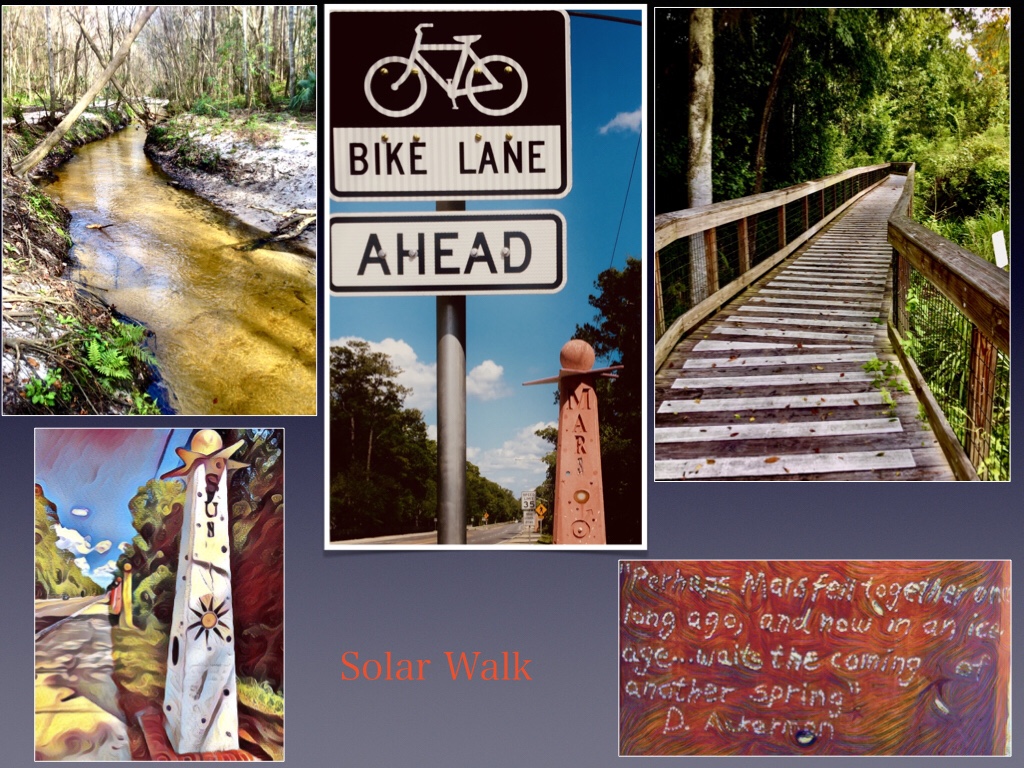 OK, 10.7 miles and you have arrived at NW 8th Avenue. If you want to linger and maybe add some mileage, hang a left and follow the Solar Walk exhibit to Loblolly Nature Preserve. It’s well worth the extra effort. Otherwise cross 8th and take the boardwalk that will connect you to Mason Manner.