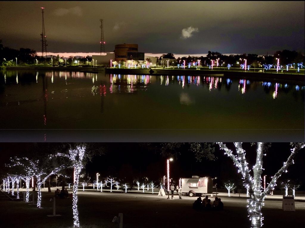 No matter how often you’ve walked Depot Park, it never grows old. This is especially true during the holiday season when the very trees themselves are wrapped up like glowing presents and the woods take on a magical cast.