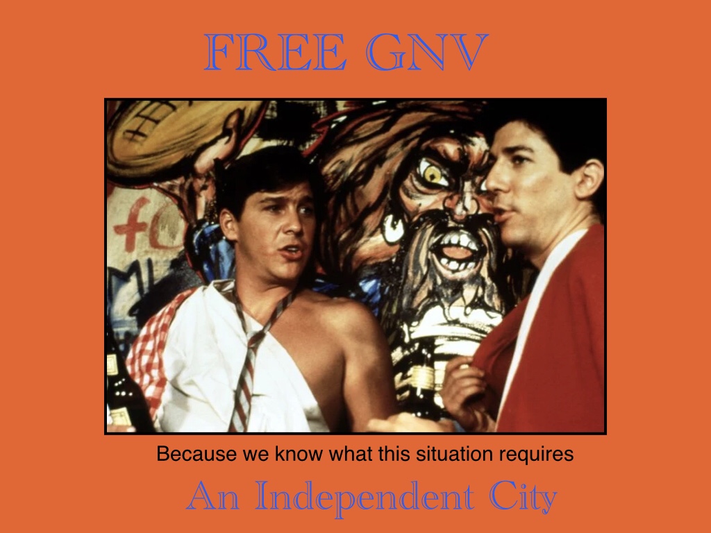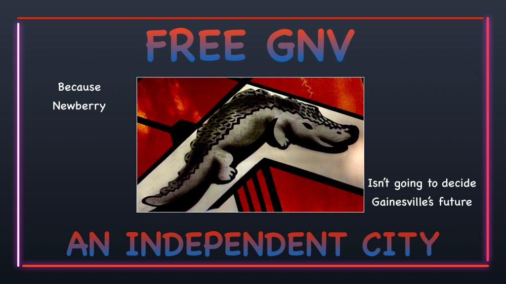 When you come down to it, we’ve got as good a chance of making GNV an Independent City as the troglodytes have of getting Springs County. Better even.