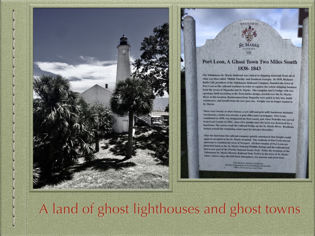 The story goes that a St. Marks lighthouse keeper was so terrified of marauding Seminoles that he begged the lighthouse service to build him an escape boat. He was refused, but it turned out the lighthouse was so remote that even the Indians wouldn’t bother with it. Nearby Port Leon also suffered from disinterest.