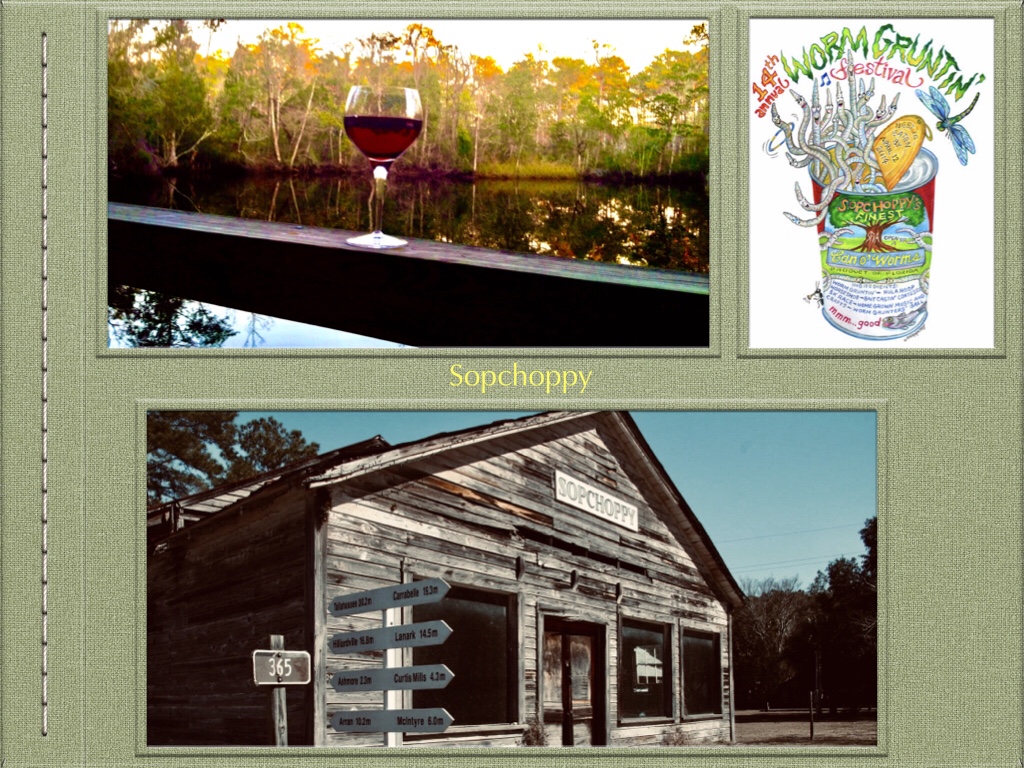 Just up the road a bit is Sopchoppy. Home of the celebrated Worm Gruntin’ Festival. The Sopchoppy River winds right through town, and if that’s not something worth toasting I don’t know what is.