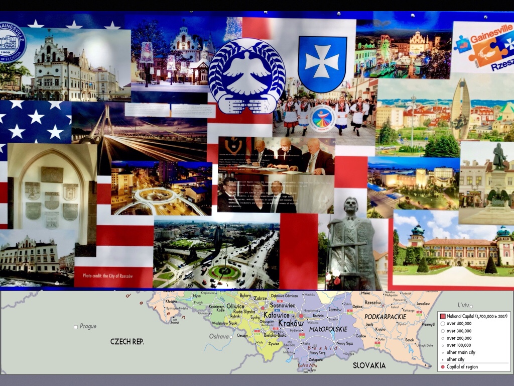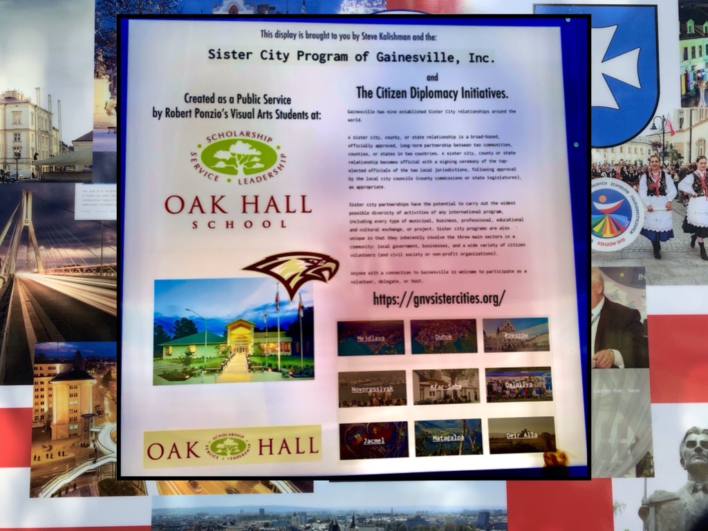 Listen. If you haven’t been to City Hall recently you really ought to drop by. Out on the front lawn is a very impressive display of collages celebrating Gainesville’s extensive family of sister cities.