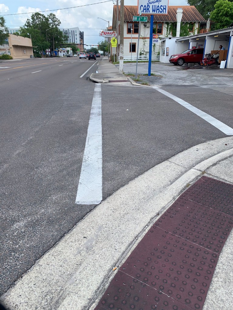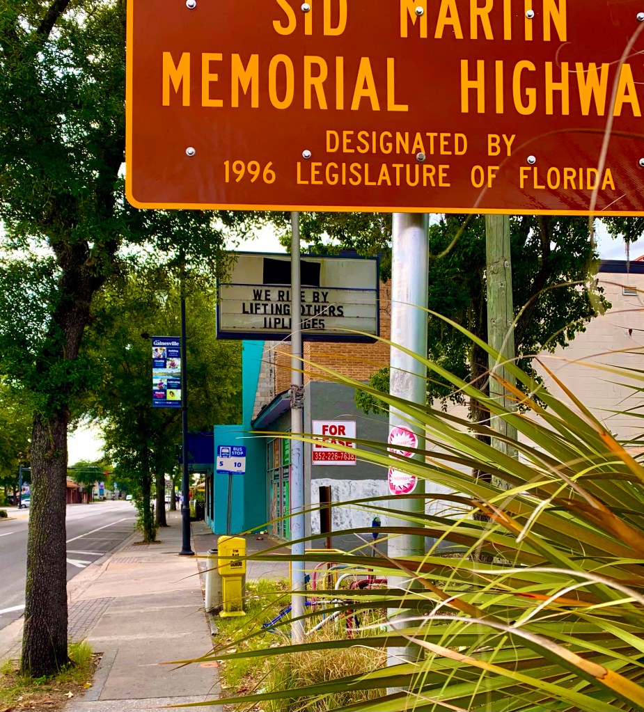 Several blocks to the south, the sidewalk that separates UF’s campus from the US 441 traffic sewer simply vanishes for hundreds of yards. A worn footpath just inches from the highway takes its place.