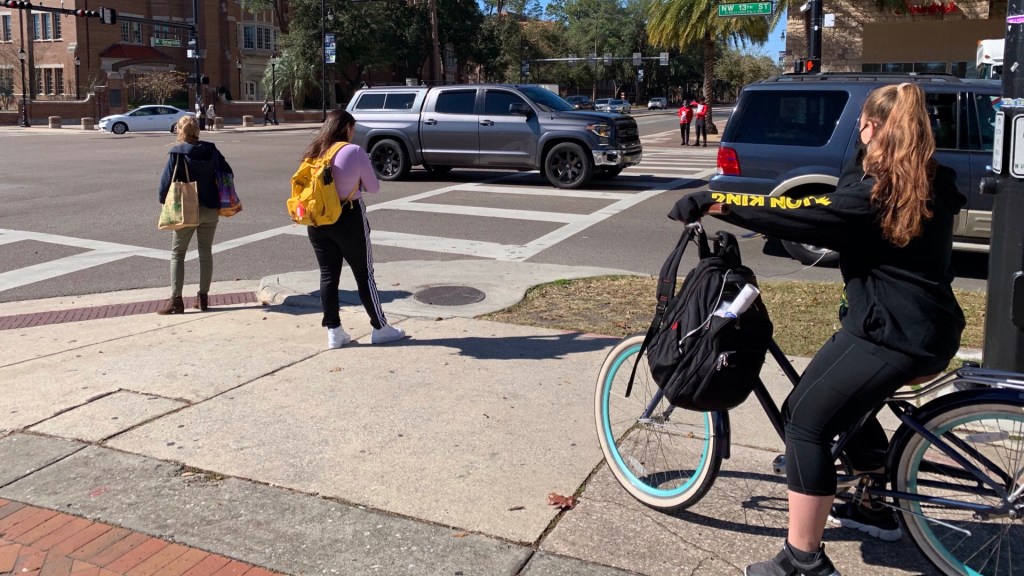 Sidewalk design is also important. “We are prioritizing people, that’s what this study is all about,” says Gainesville’s mobility director Melissa McGinnis. “Pedestrians are at the top of the pyramid.”