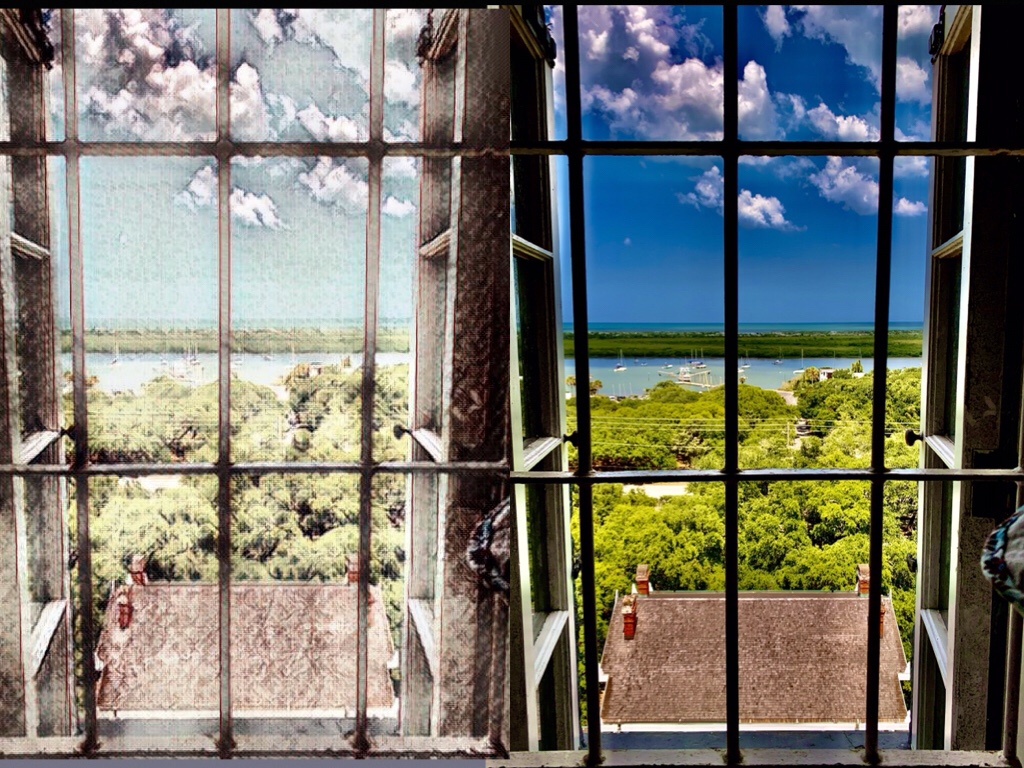 You pause on the ascent. If only to contemplate the larger world beyond its thick portals.