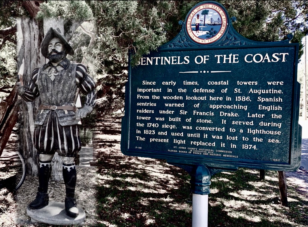 Long before there was a lighthouse a watch tower stood there to guard against Drake. He came anyway.
