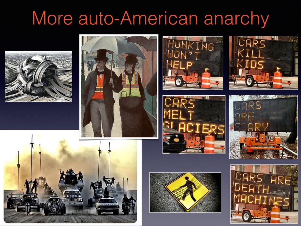 We can of course expect quick action from the same highway engineers who have turned autoAmerican Anarchy into a national contact sport. A change of heart at US DOT “would be a stark contrast to the DOT’s current approach, which NACTO Executive Director Corinne Kisner says “often place[s] other priorities — like the unfettered flow of vehicles — above or on par with saving lives.”