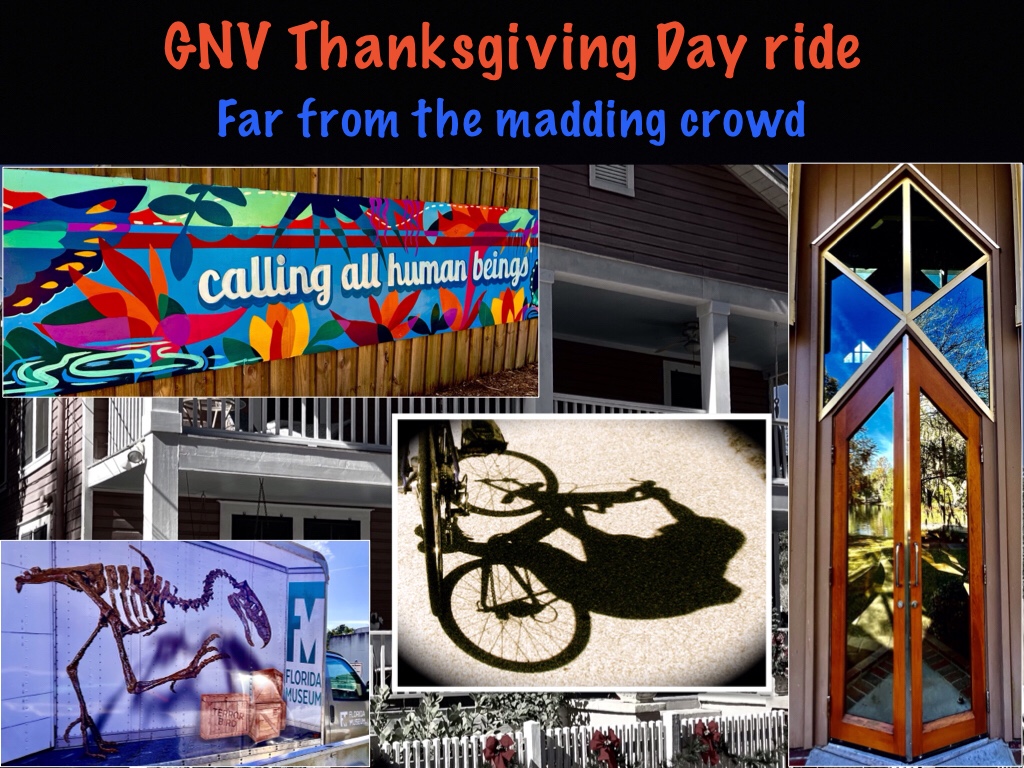 It was a perfect Thanksgiving morning. Clear, sunny, chilly and…well…pretty much running a people deficit. Just the sort of day you might choose to take a solo ride around GNV. To remind yourself why you love this town.