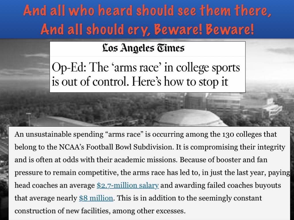 Just as we won the Arms Race by throwing money at the Military Industrial Complex until Ivan said “Nyet!” we’re poised to win the Great College Sports Facilities Race the old fashioned way.