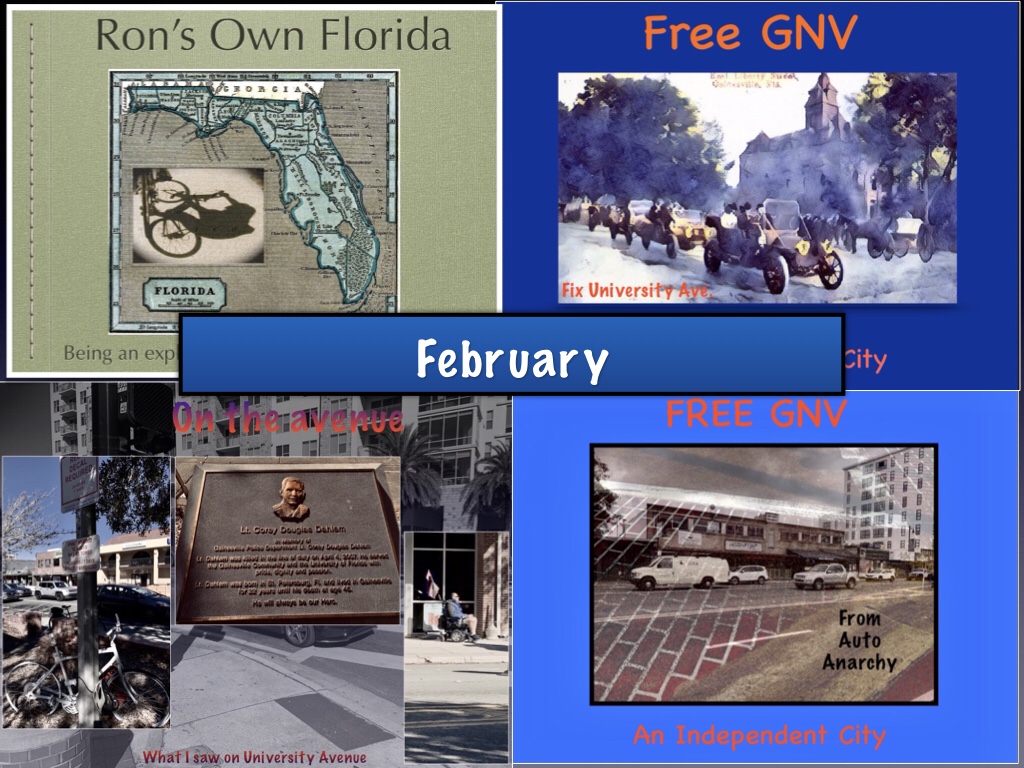 With all the gritty asphalt grimness, Free GNV also took time in February to take a stroll down Memory Lane to some of my own favorite Florida destinations, including Casadega (we know what you’re thinking before you do), the old brick road that used to be Dixie Highway, Ray Charles’ birthplace (no it’s not in Georgia), Floral City and arcane points north, south, east and west.