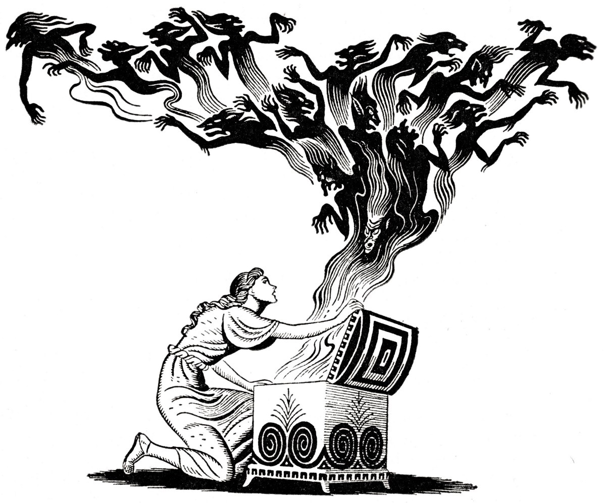 As a gift, Zeus gave her a box, which she was told never to open. However, as soon as he was out of sight she took off the lid, and out swarmed all the troubles of the world, never to be recaptured. Only Hope was left in the box, stuck under the lid.