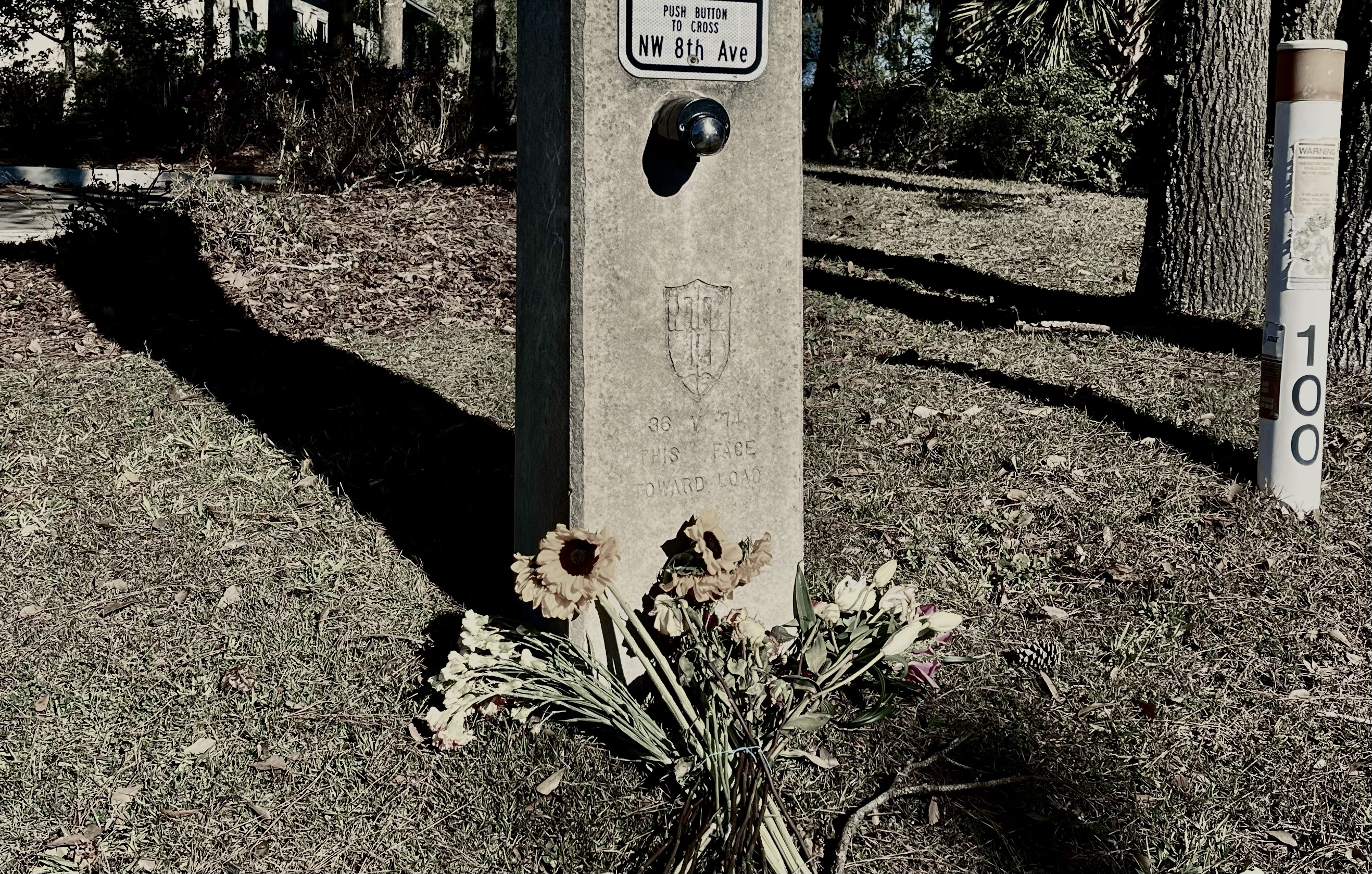 A spray of dead flowers propped on a concrete pole was a sad reminder that something terrible had happened at the intersection of NW 8th Avenue and NW 10th St.