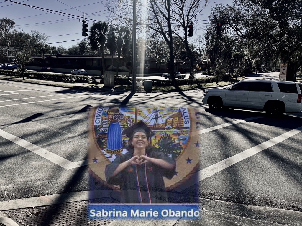 Just four days into the new year, Sabrina Obando, 22-year old UF graduate student from Miami, was walking across 8th Avenue, in the crosswalk. She was struck down and killed by the driver of a pickup truck turning off 10th.
