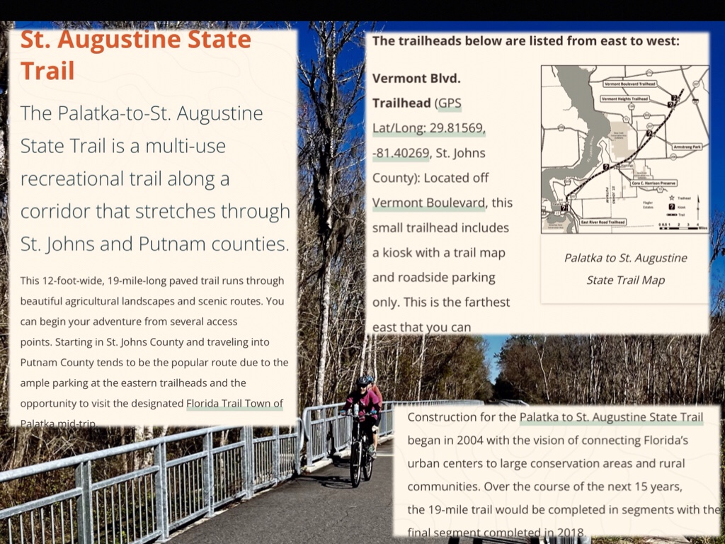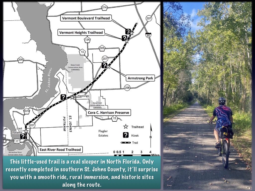 But with the recent completion of the final “missing link” between Hastings and Armstrong, it is now possible to ride the entire length of the trail, from Vermont Heights in the east to the banks of the St. John’s River in the west.