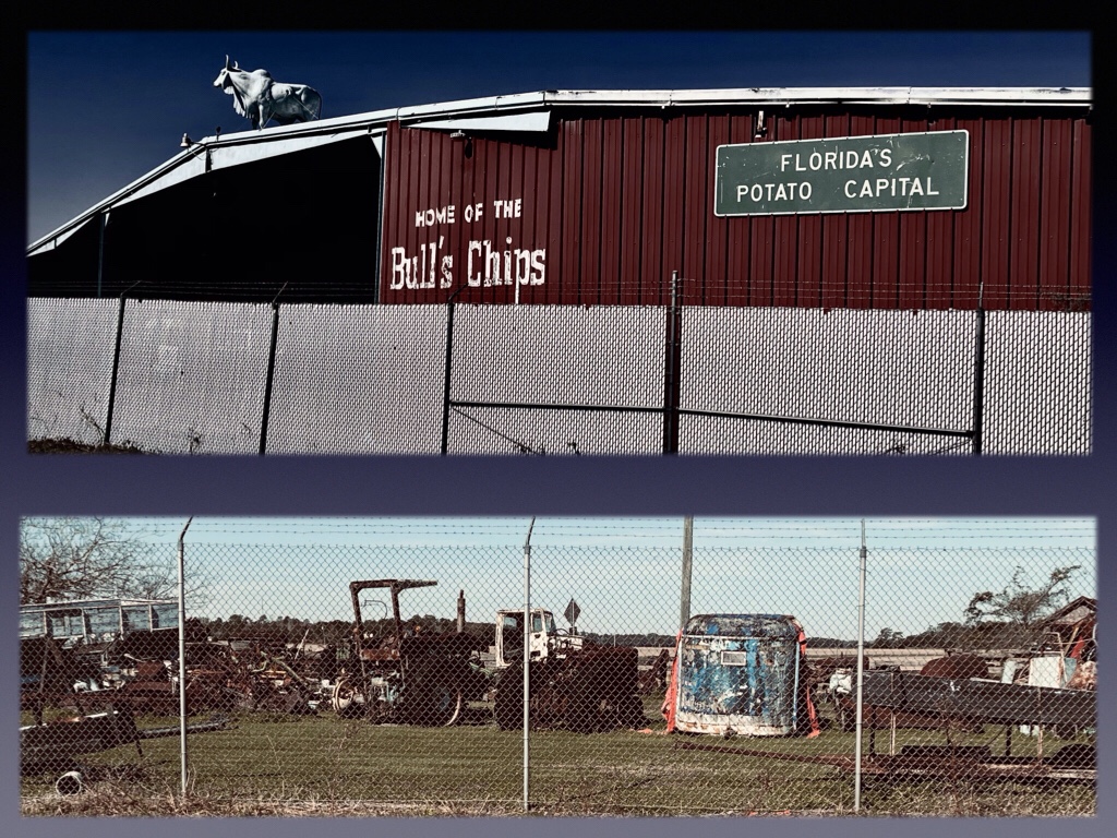 Shortly after that the trail will take you right through downtown Hastings. Once dubbed the Potato Capital of Florida, it’s now pretty much a relic of past agricultural glory. Five years ago Hastings residents voted to give up their town government, which was founded early in the last century. But while the era of the Potato Kings may be long gone, the nearby County Line vegetable market still does a booming business.