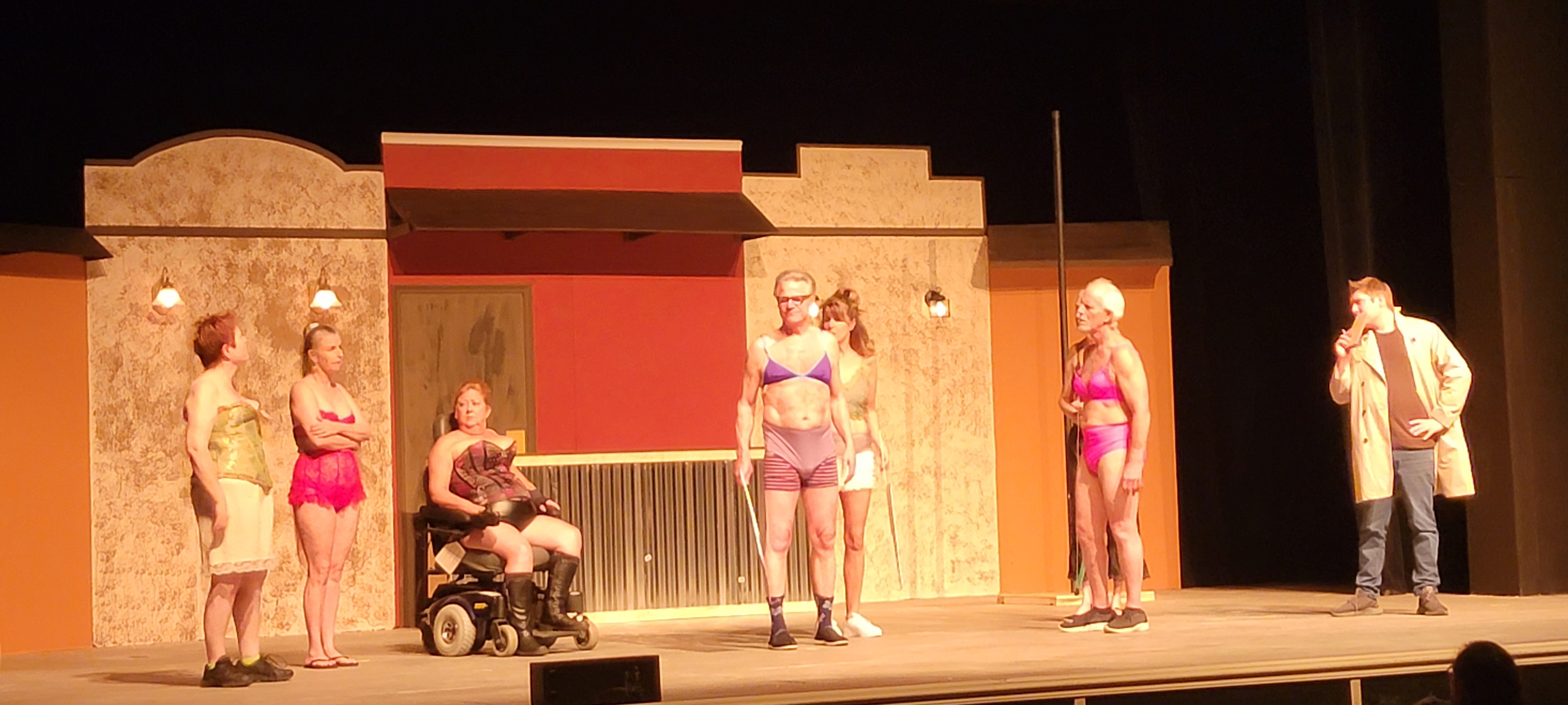 Loic Robertson is especially fun to watch as Tommy, the frantic village employee who teaches everything from pole dancing to gardening and still manages to report the news in his spare time. And he has an outrageous outfit for each endeavor.