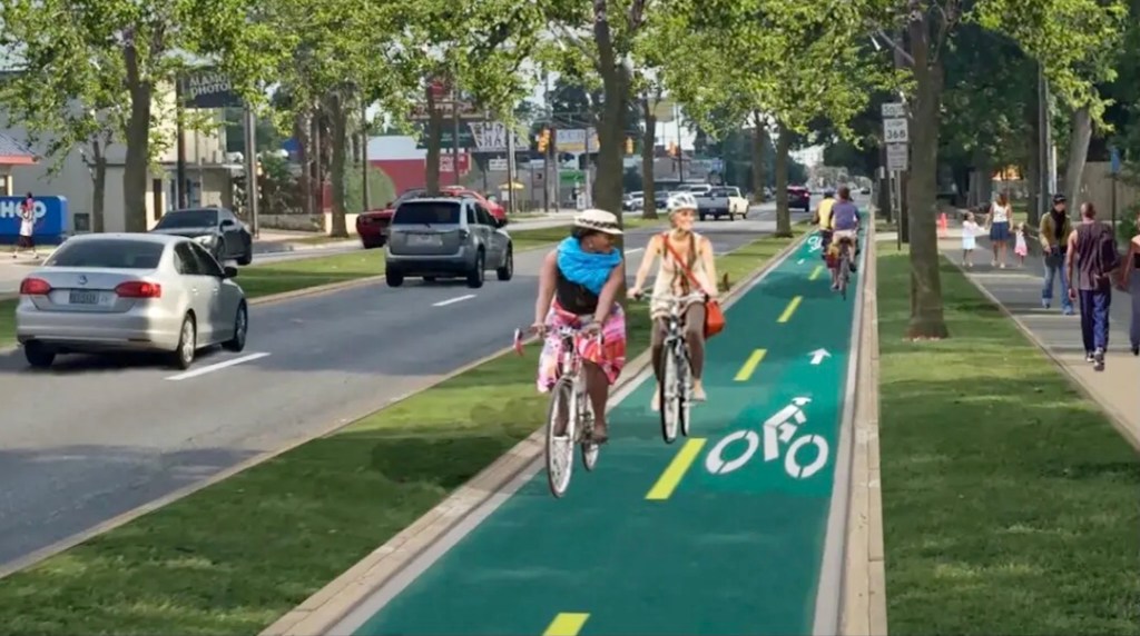Walking the few residential blocks from Tom Petty Park to the Duck Pond neighborhood, we talked about the possibility of utilizing both sidewalks and “green” lanes to facilitate safe and easy access to Sweetwater for pedestrians and cyclists alike.