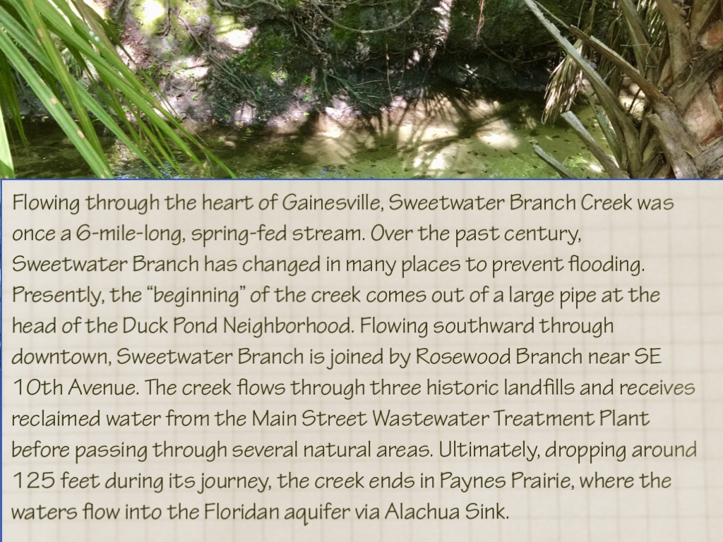 Back when GNV was a railroad town Sweetwater Branch, which ran through the middle of downtown, was something to brag about. But much has changed since then.