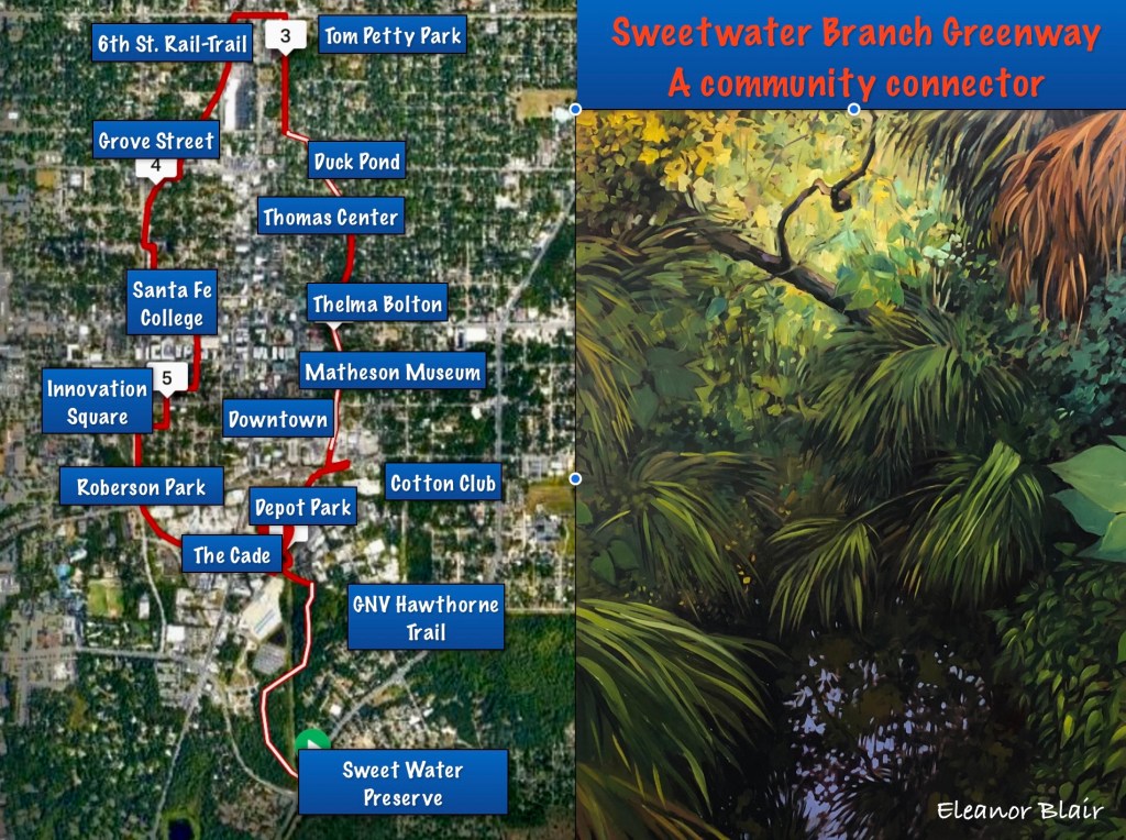 It would connect Sweet Water Preserve in the south to Tom Petty Park in the north. It would be the thread that would knit together Grove Street, Santa Fe College’s new GNV campus, Innovation Square, The Cade and much more.