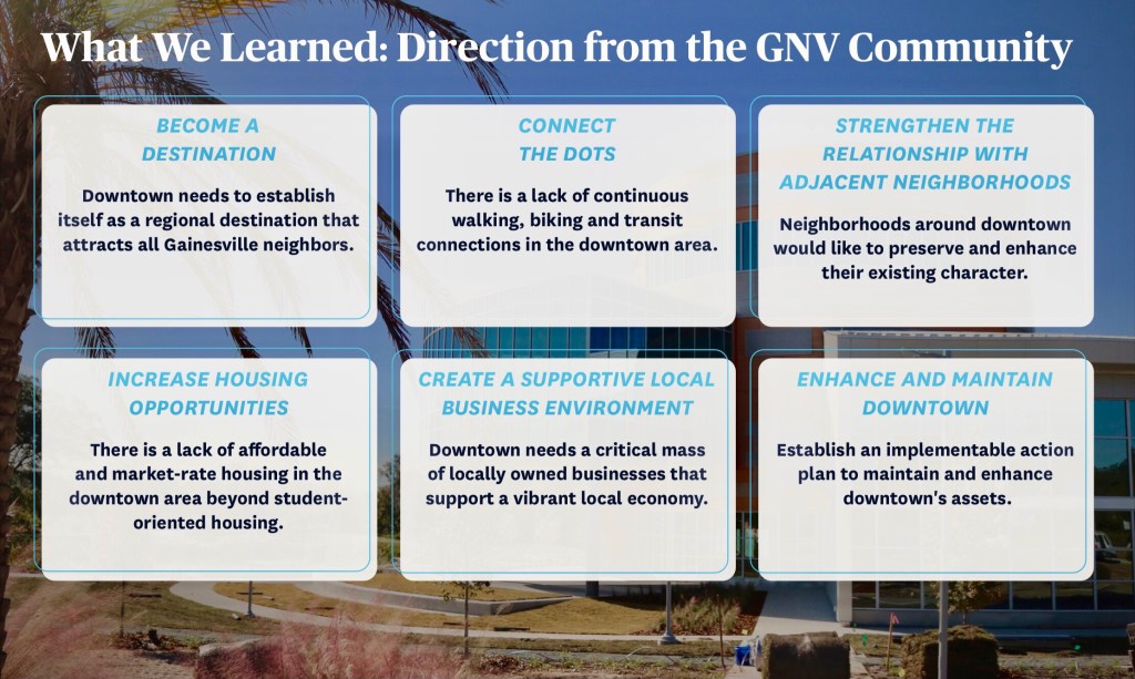 MKSK, the consulting firm that is working with the city and UF to craft a master plan for downtown GVN, has submitted its preliminary recommendations.