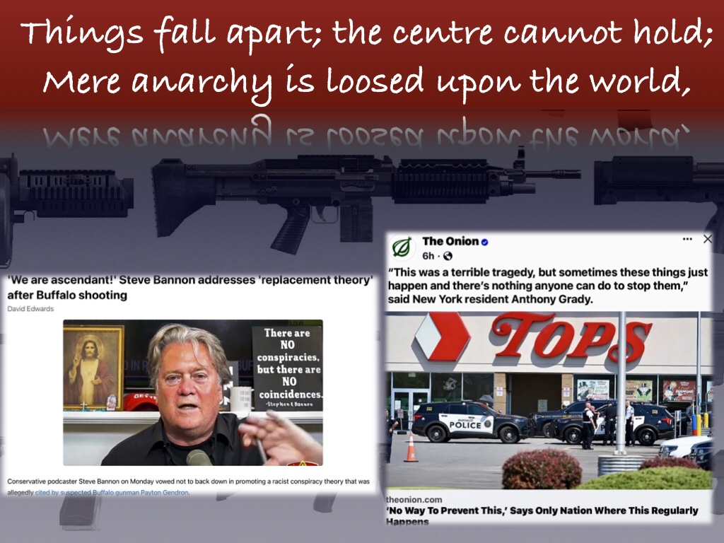Hate to end the week with a downer post, but the shooting in Buffalo left me feeling maudlin. It feels like things really are falling apart and that the center cannot much longer hold.