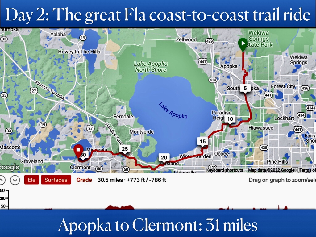 A delightful urban ride that took us from Apopka to Clermont, first on the West Orange Trail and then onto the South Lake Trail.