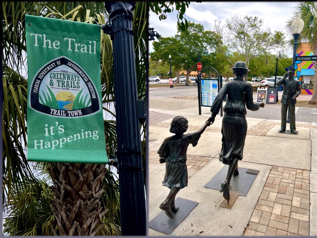 Tarpon Springs used to be the terminus of the Pinellas Trail. Now it continues on for several miles (50 altogether). The trail runs right down the middle of downtown, with the dual purpose of connecting trail users with lots of shops, restaurants and taverns while, at the same time, slowing down the cars on either side of it.