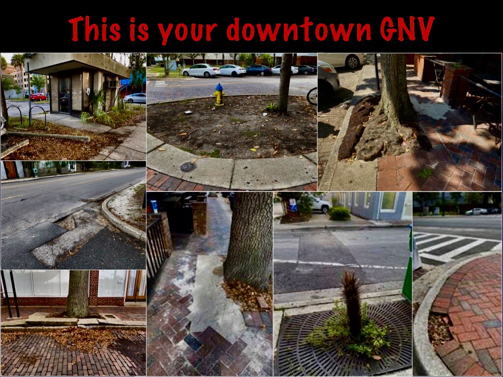 The good news is that the consultants hired by the City and UF to put together a downtown master plan have recognized that good streets and sidewalks are critical to having a successful downtown. The bad news is that addressing the problem won’t be cheap or easy.