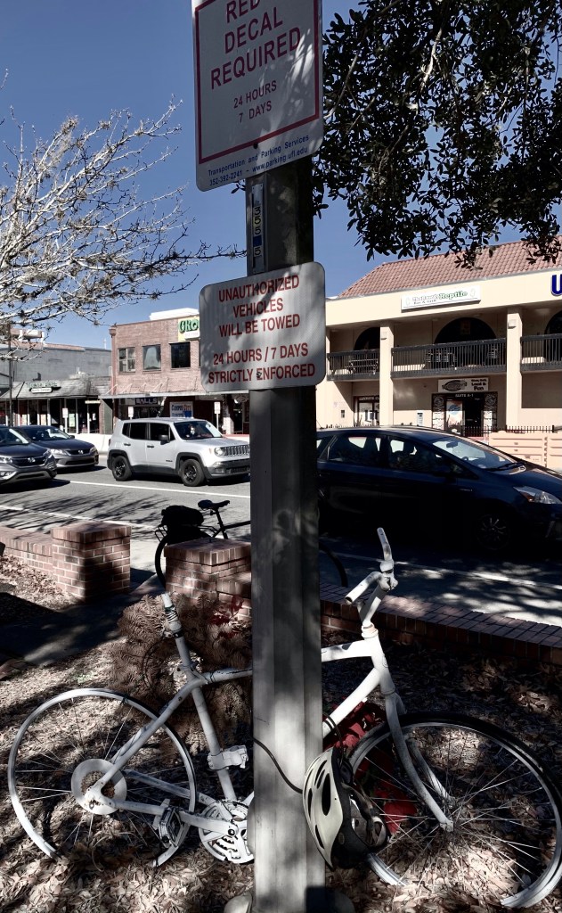 By the way, when I was executive director of Bike Florida we lost a very nice man on Newberry Road. A gentleman who had come here all the way from Arizona to ride his bicycle in Florida.