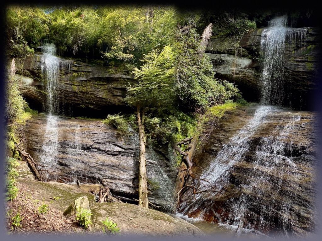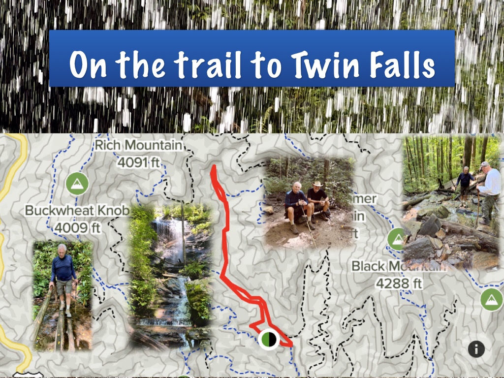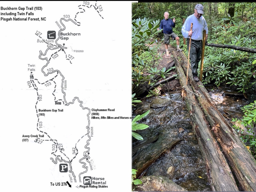 So today Buddy Irby, Walt Barry and I drove into North Carolina’s Pisgah National Forest, turned right onto Avery’s Creek Road, motored past the horse stables and parked at the Buckhorn Trailhead. From there it was a mere five mile round trip to Twin Falls.