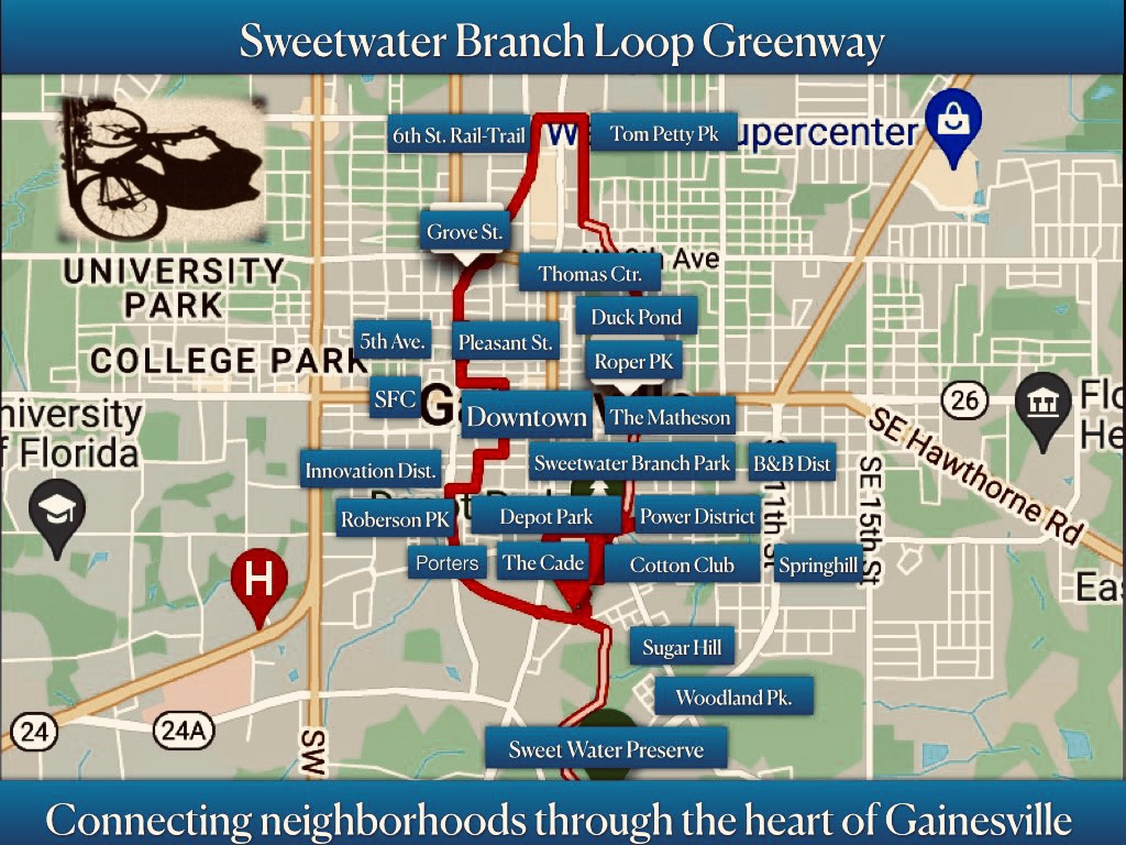 And it also endorsed the idea of linking the Sweetwater Greenway up with the Sixth Street Rail-Trail to help create “a new and exciting story” for the downtown GNV area.