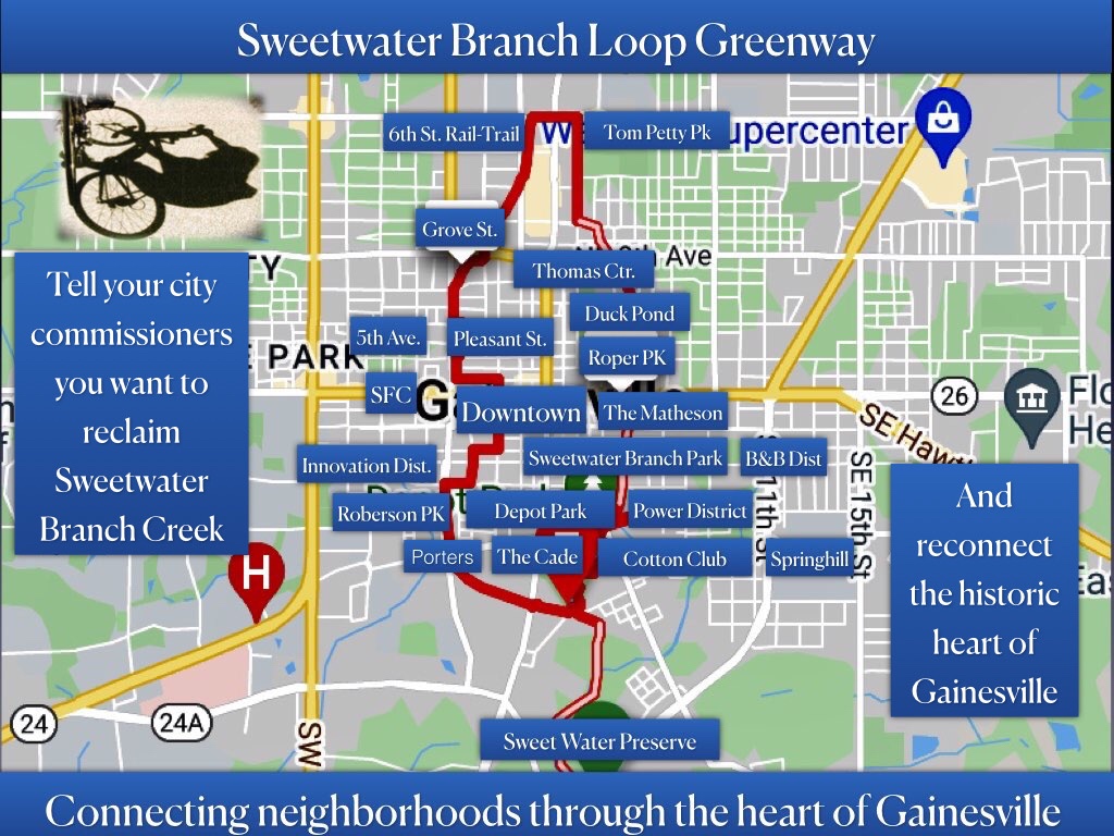 Lately I’ve been on the speaker’s circuit making a case for development of a Sweetwater Greenway Loop through the heart of GNV. Here’s a look at my presentation.