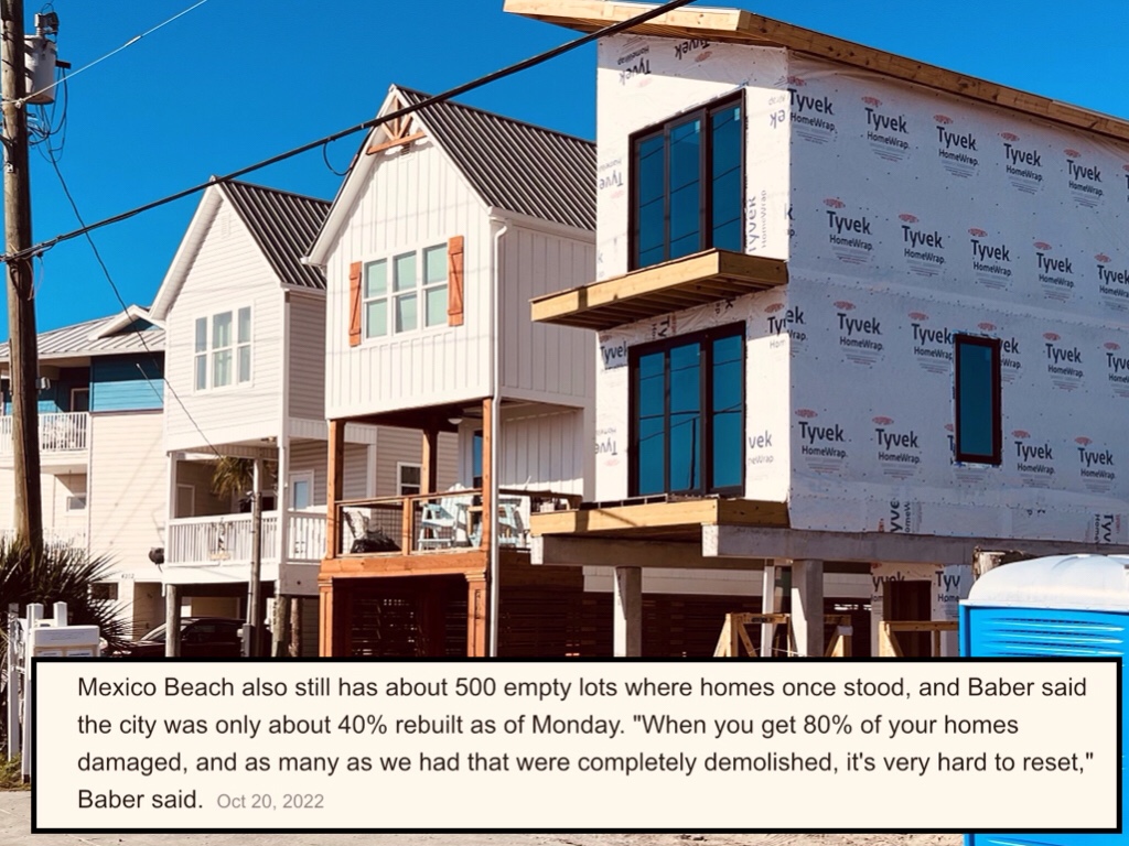 A mere four years after Michael, realtors and construction crews are swarming over Mexico Beach. Cashing in on the lucrative renewal opportunities that Michael created for them.