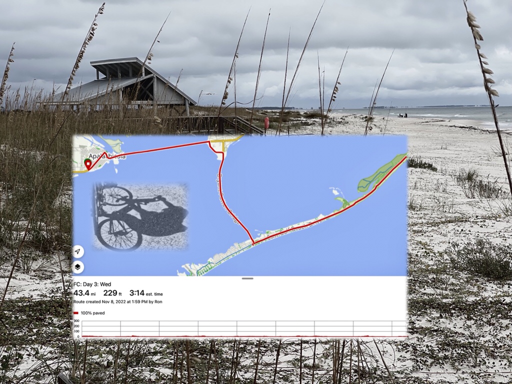 So it’s day three of our Forgotten Coast Tour. The day we do a 43-mile out and back from Apalachicola to St. George Island.
