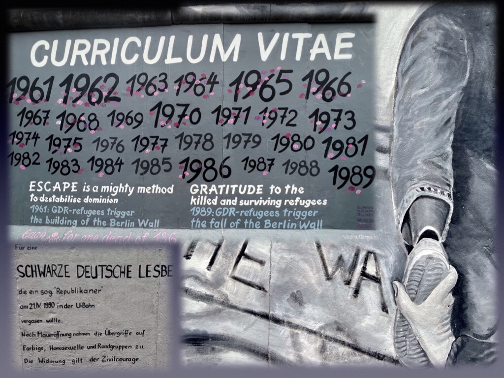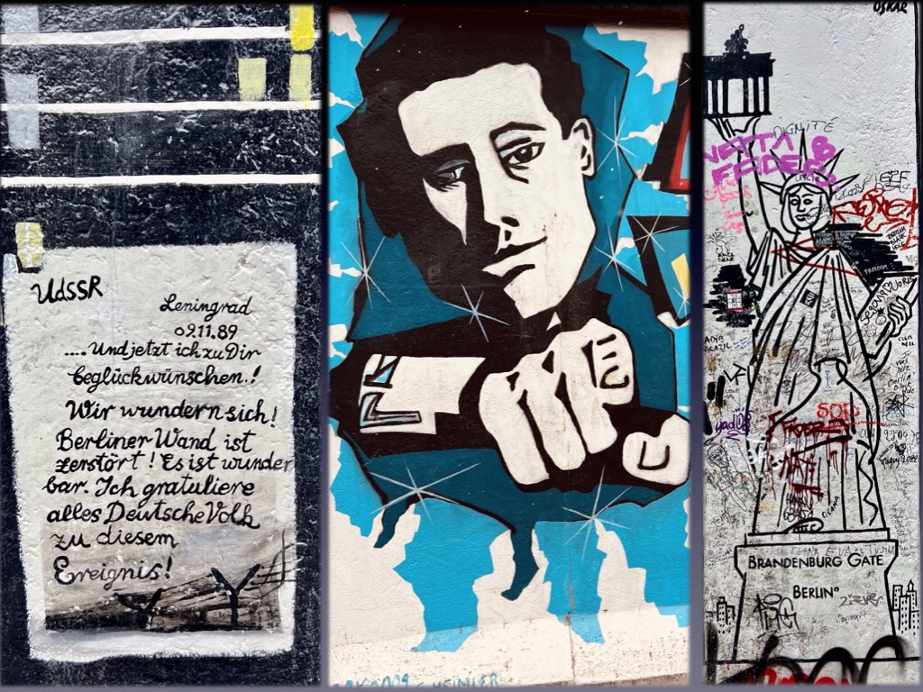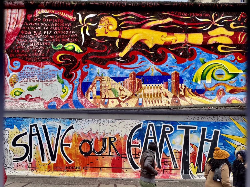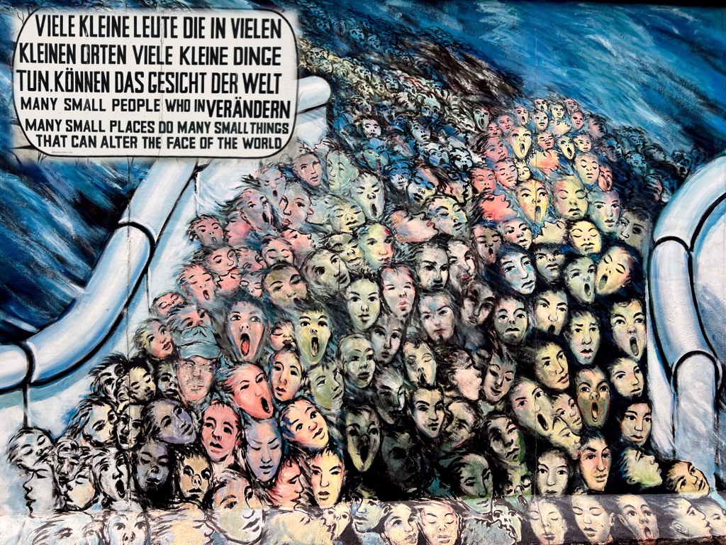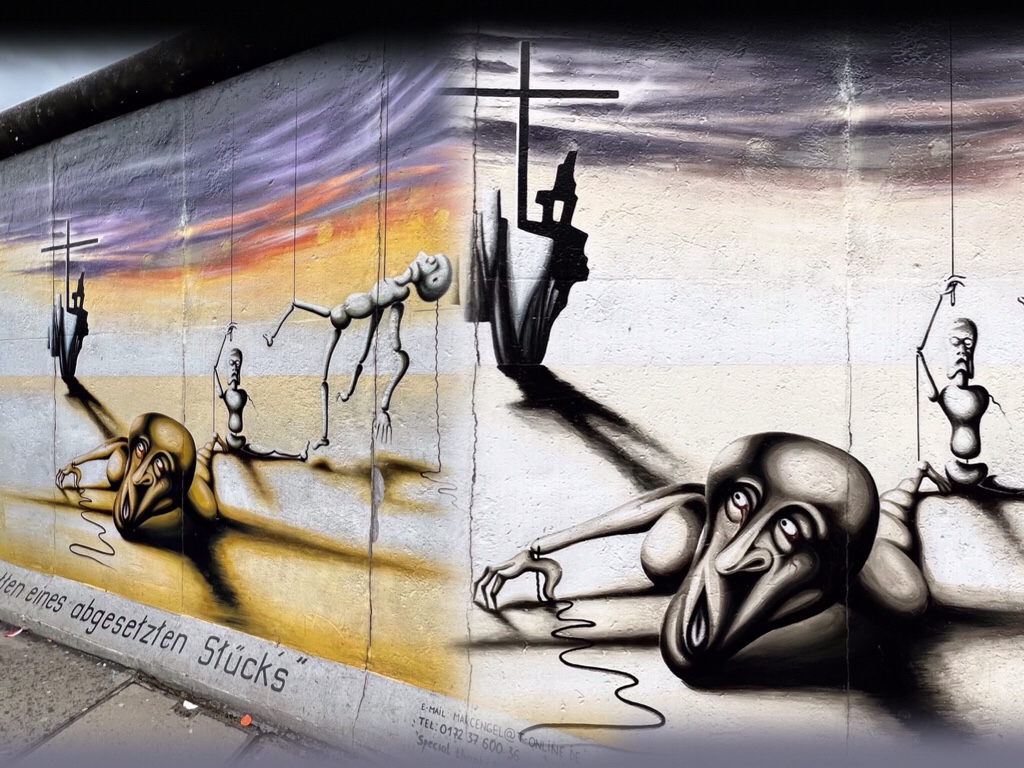 “The paintings at the East Side Gallery document a time of change and express the euphoria and great hopes for a better, more free future for all people of the world.” Wikipedia.