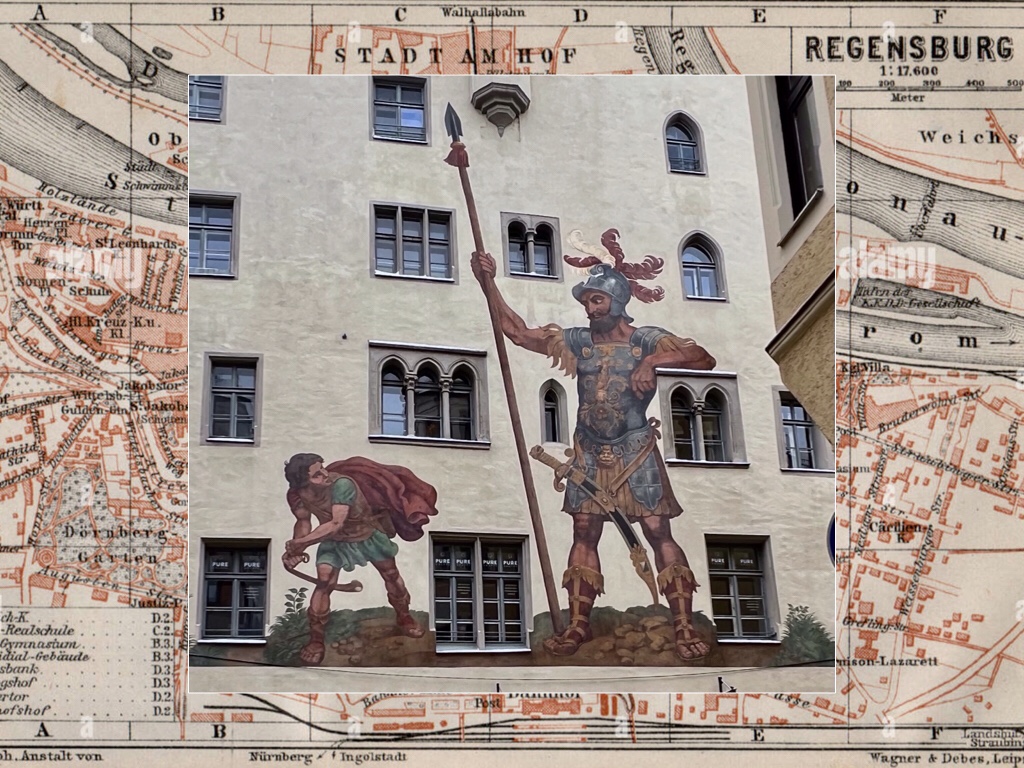 If I’m reading this correctly, David once saved Regensburg by slaying Goliath in the town square.