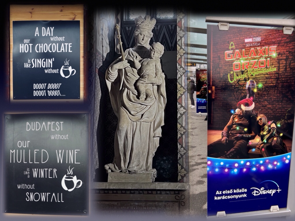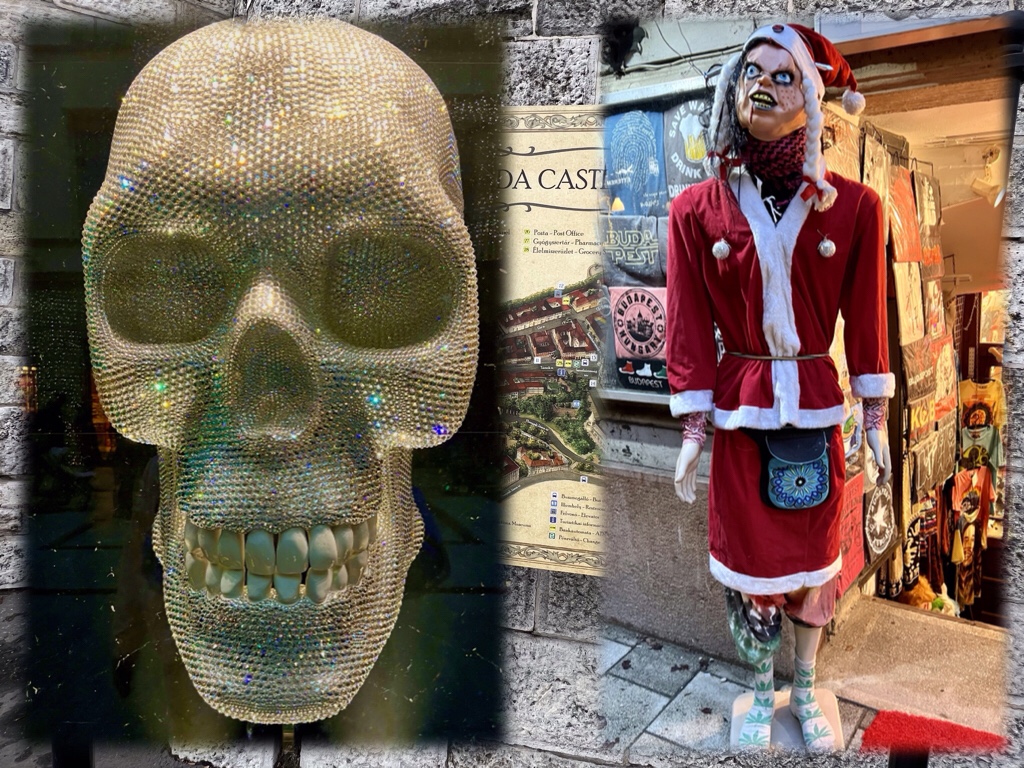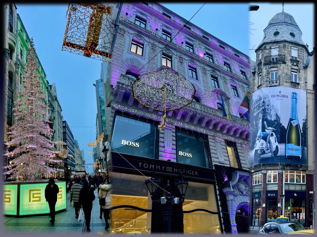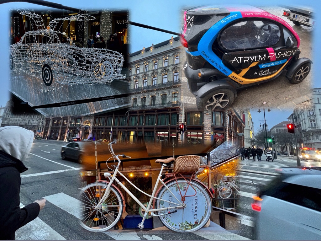 A Mercedes made of Christmas lights. A really tiny car. A bicycle. Name three things you can find in Budapest.