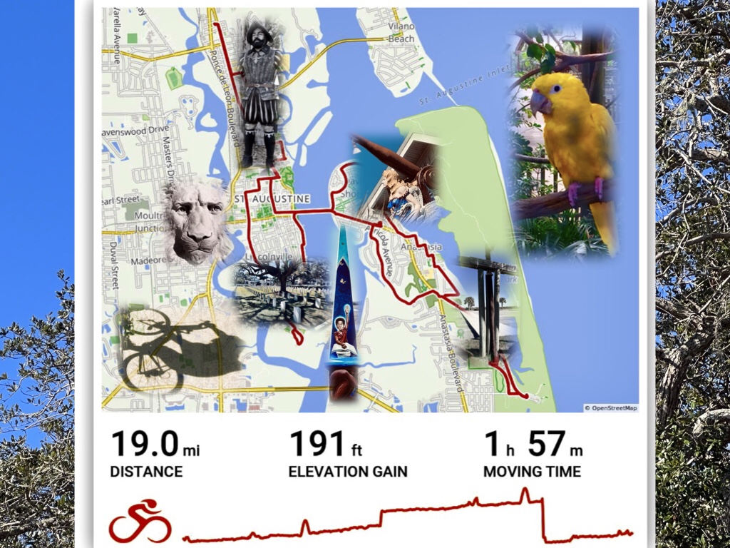This year we returned to Anastasia State Park. Where the trees have learned to bow to the tyranny of wind and salt. In addition to being my favorite place to camp in all of Florida it is also a great spot from which to ride forth into and around the Ancient City.