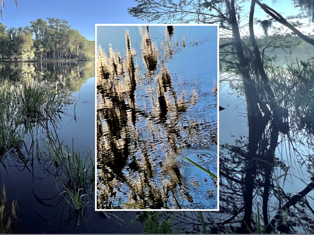 There is something arresting, even seductive, about the play of light and reflection in ripples on water. Especially when an early morning sun sets the Spanish Moss all aglow.