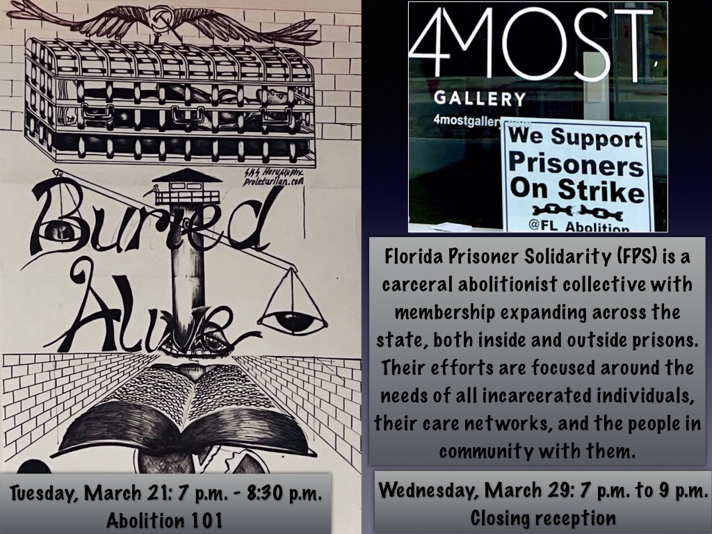 “Burn It Down: The Communications of Resistance” is an exhibit done in collaboration with Florida Prisoners Solidarity.