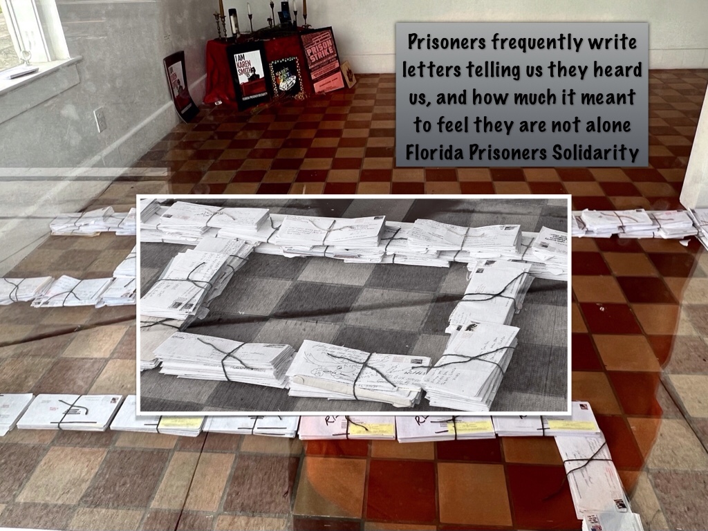 “Prisoners frequently write letters telling us they heard us, and how much it meant to feel they are not alone. It’s also one of the few ways to convey to the FDOC staff that they are not operating in complete secrecy just because of their remote locations; that people are indeed paying attention to their actions and documenting their abuses.” FPS.