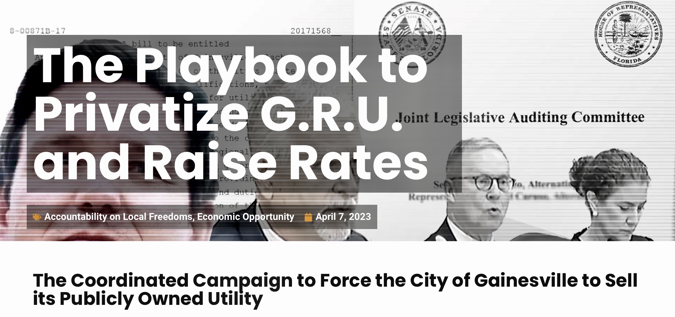 In effect, the GRU hostile takeover bill is a playbook that, if successful, will inevitably lead to the privatization of other municipally owned utilities in Florida.
